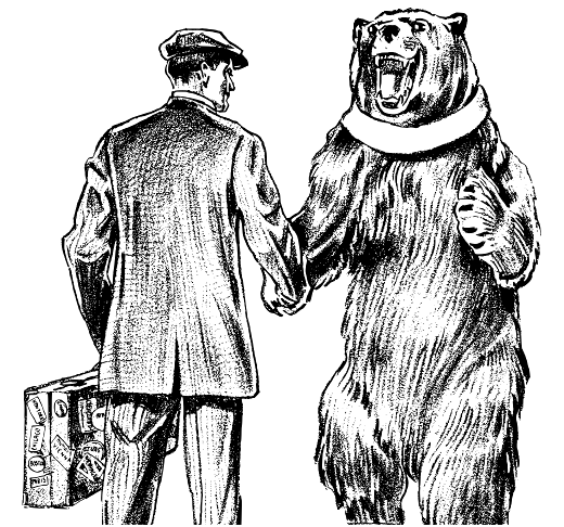 I shook his great paw with gusto, and he returned the gesture to me. I asked him what he was doing there, and he returned the question to me. I told the bear I was traveling, a wanderer finding his way. He told me that he was similar, his arrangements changing by the day. With a bit of bashfulness I followed it up with a question abut what he ate; the bear reassured me quite sweetly that I wouldn’t end up on his plate. Humans, it seems, are not tasty, when one can have honey and wine; a bear is not likely to eat us but they fear that we covet what they dine. I told my new friend with assurance that he could expect better from me; the bear seemed to believe it, but said that we’d have to see. I could tell he was a bit frightened, and badly wanted to run; when I asked him what was the matter, he asked if I owned a gun. When I told him I didn’t, I could see he was relieved, but the bear reminded me warily that his worry was scarcely eased. For a lifetime in the forests had taught him one thing well: close by any unarmed human was a gun-toting one as well.