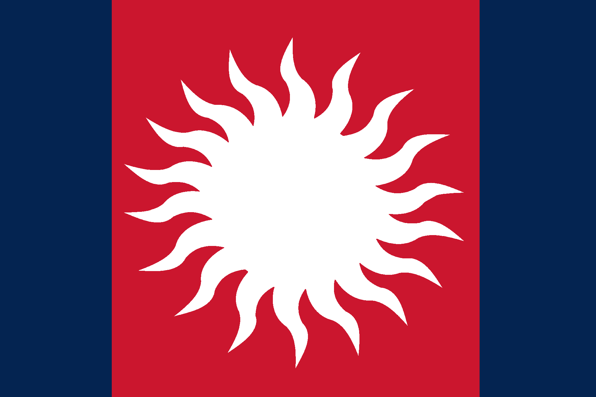 When the Valoise Despotate evolved in the First Valoise Empire, the Emperor himself revised the flag. Iterating on Fouquet’s simplified white sun design, the Emperor gave the rays emanating from it a rakish tilt reminiscent of the original Oriflamme, perhaps as a reflection of the newly monarchical nature of his regime. This flag, which became known as the Scierie-Soleil, or Sawmill Sun, persisted through the Emperor’s ultimate overthrow and the restoration of the royal standard following over twenty years of near-continuous warfare.