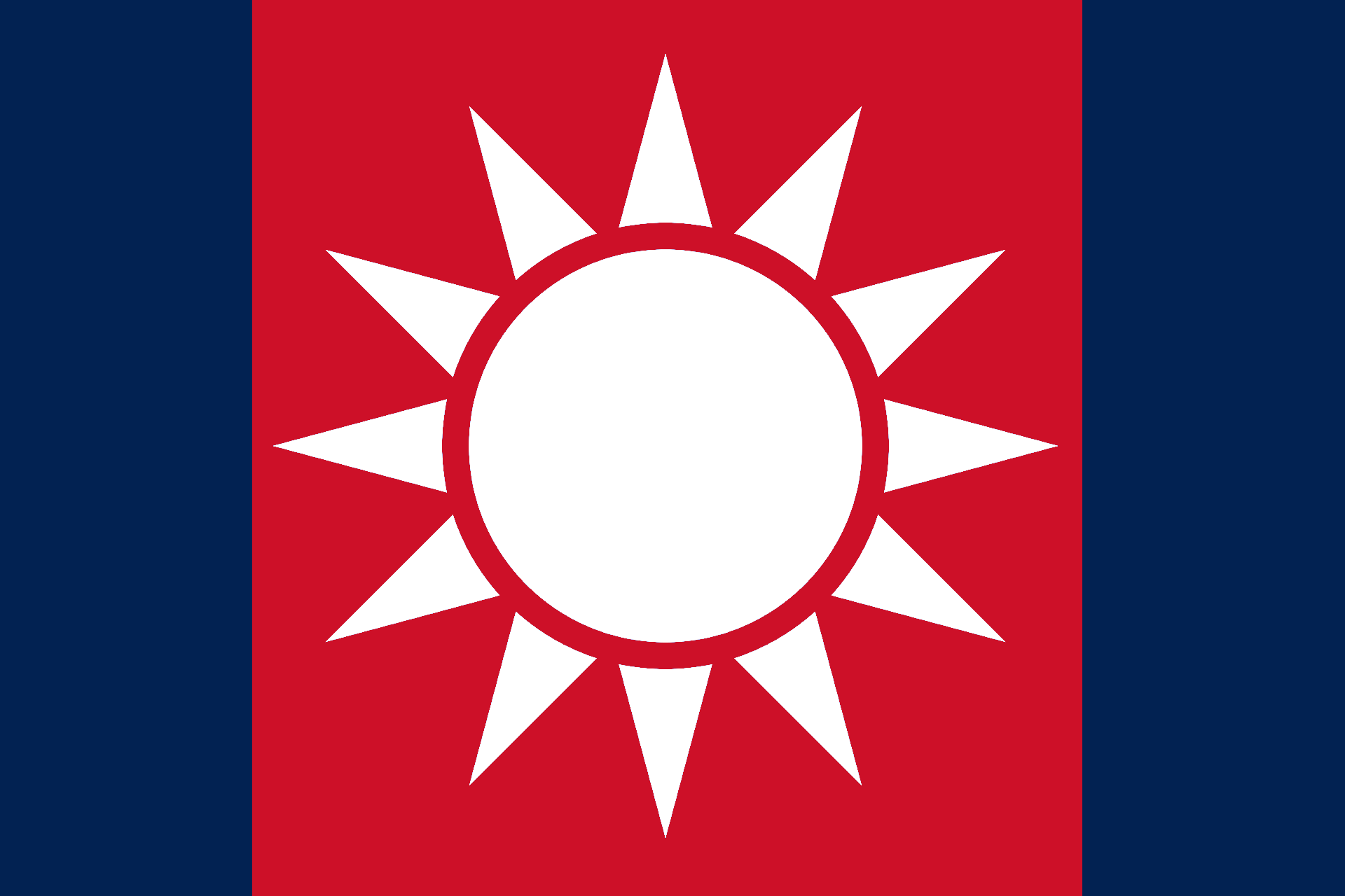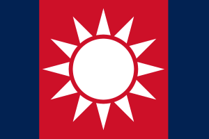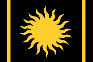 First and foremost was a revision of the national flag. Rémy Hauet had by this time been imprisoned as an enemy of the people, so the task fell to one of the Directors, Jean-Claude Fouquet. Rather than reconstitute the Flag Committee, he simply revised the design himself, simplifying the old recolored Oriflamme into a series of geometric shapes. This new design, which he called the Republican Sun, greatly eased manufacture of the flag and hastened the incorporation of white suns into the revised military uniforms then coming into service. Foquet also toyed with a revival of the Morsflamme, with no bars and a white sun of the simplified design, for use against enemies of the state. A number of these flags were prepared for, but not used in, the desert campaigns in Khemet–the Osmans occupying the area were coincidentally using a very similar black flag.