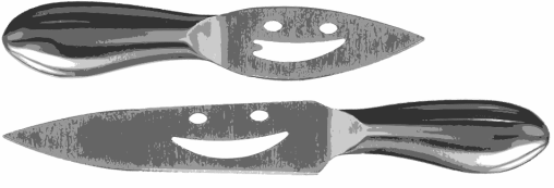 The knife, Mr. Happy, had come out red and wet, so Jeremy took a moment to wipe it off, revealing the jaunty grin cast into the stainless steel blade. He replaced it next to its smaller wife, Ms. Joy, in the custom sheath he’d made in the small of his back. They’d been cheese knives, once, their smiles serving as holes to help them glide through dairy without sticking. Justin had bought them on the spot when he’d seen them in that Kenosha Goodwill, since they were absolutely perfect for his purposes. Stainless, one-piece with a low risk of breaking, small enough to easily conceal, and–most importantly–aesthetically pleasing.