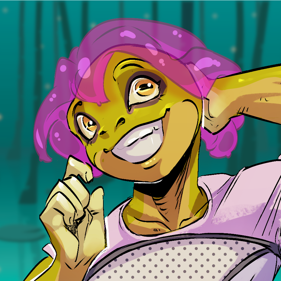 The COMMUNICATOR VOICE abruptly cuts off in a burst of horrifying static. DUVVU visibly jumps a bit out of their seat, their slimy “hair” bouncing.