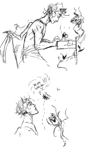 “I’ll never tell,” hissed Nuby with a wink. “What I will tell you about, my dear, is how marvelous we sisters are. How long has it been since you tasted a little seduction, slipped a wee knife between welcoming ribs, or manipulated a spider’s own web to strangle him?